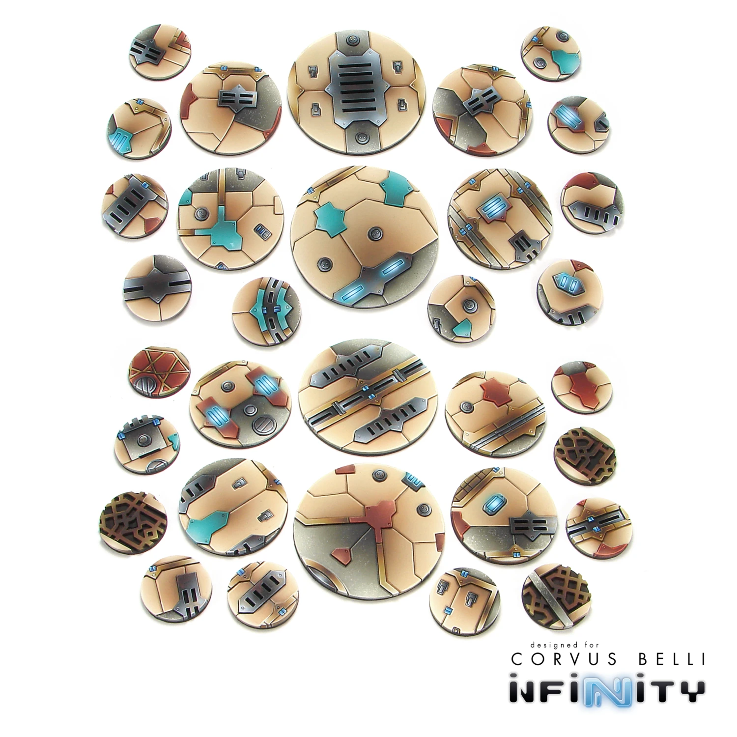 The bases can be used as-is or mounted on standard Corvus Belli bases that you can magnetize for transport using our Rare Earth Magnets. They are lined up to work perfectly with our Infinity Status Discs.