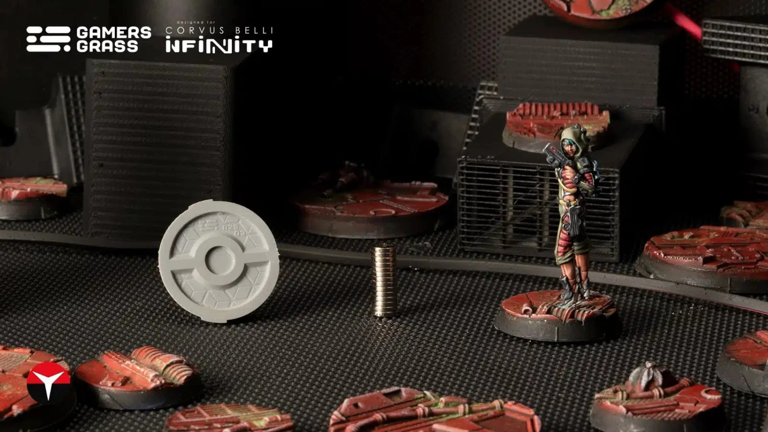 Featuring Line of Fire (LoF) marks, the bases are designed for “Infinity” by Corvus Belli.