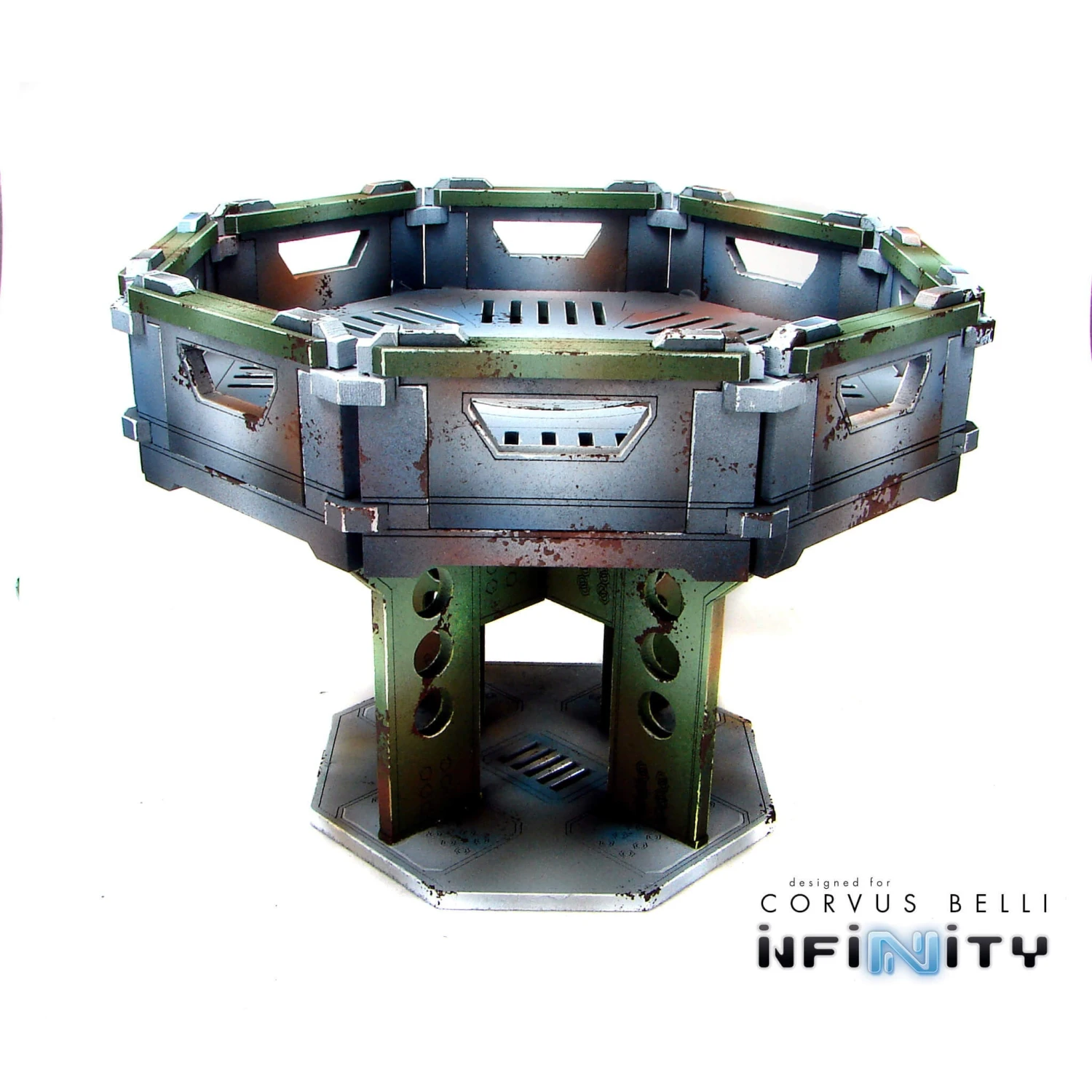 Functional by itself as a standalone piece with the included ladder. The center disc is a removable 40mm piece that allows you to drop in any objective with a 40mm base, including our very own Tech Consoles and Communication Arrays.