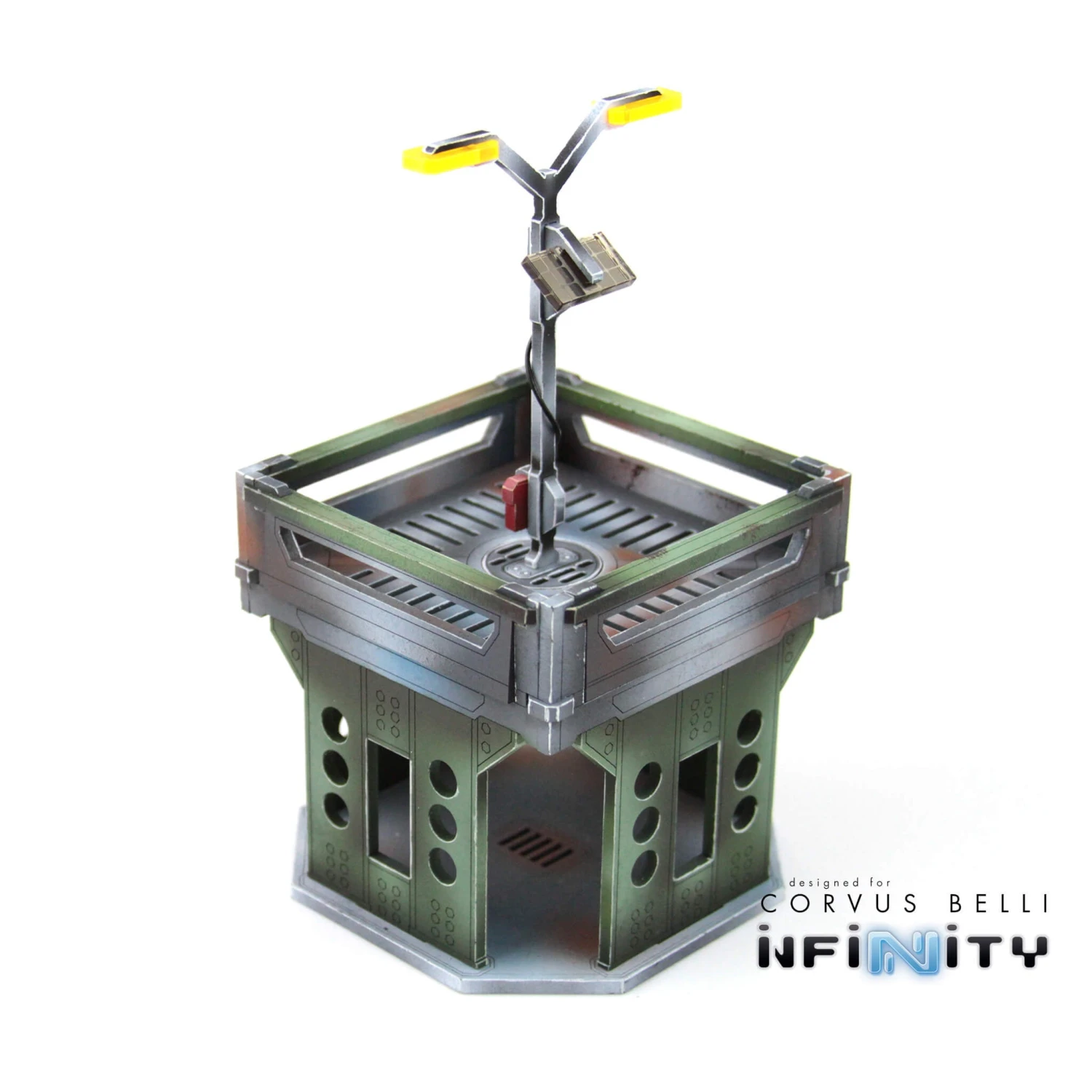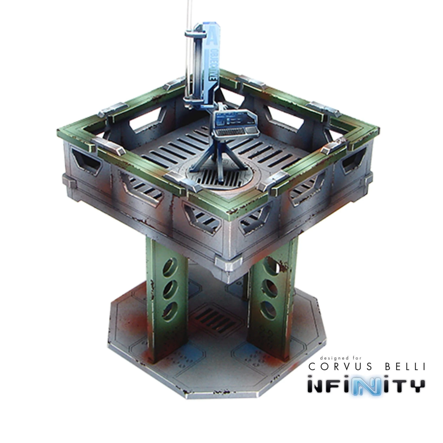 The center disc is a removable 40mm piece on the Large Square that allows you to drop in any objective with a 40mm base, including our very own Tech Consoles and Communication Arrays.