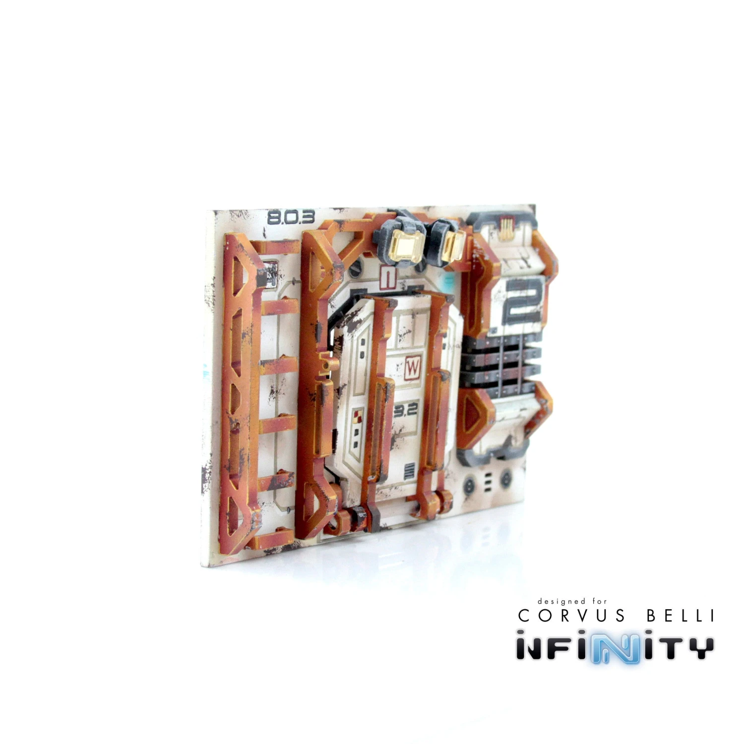 This Product Contains one Cosmica Fuel Building, designed for Infinity the Game. It includes a Zeta Frame, Zeta Roof, 2x Fuel facades and 2x Access Panel facades. There is an option to add pipes for added interior detail.