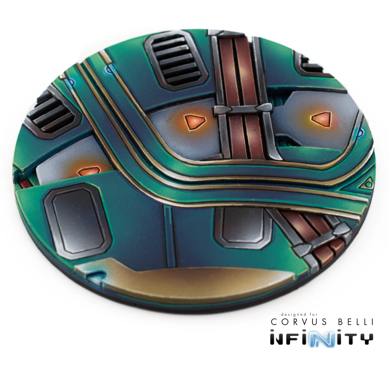 The bases can be mounted on standard Corvus Belli bases that you can magnetize for transport using our Rare Earth Magnets. They are lined up to work perfectly with our Infinity Status Discs.