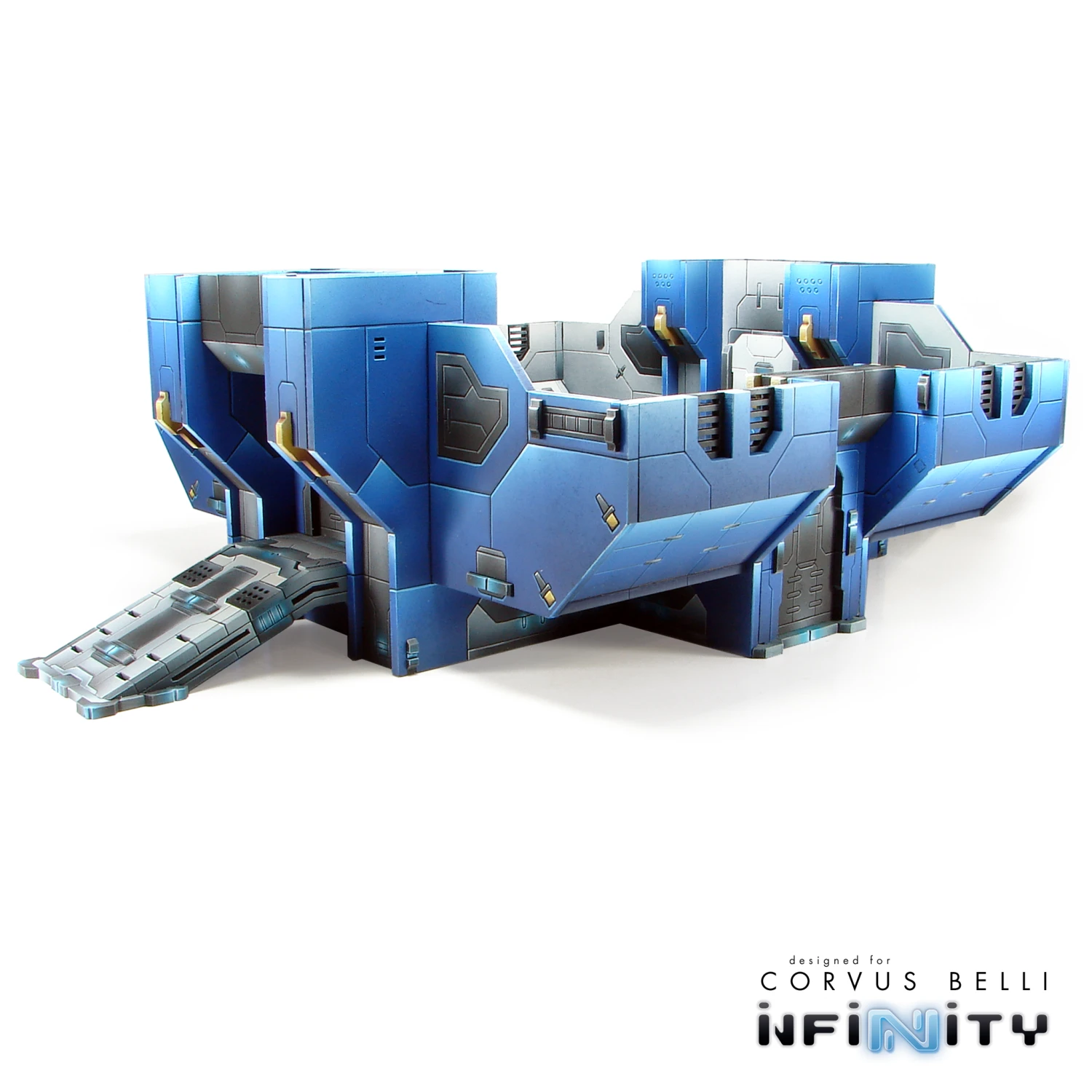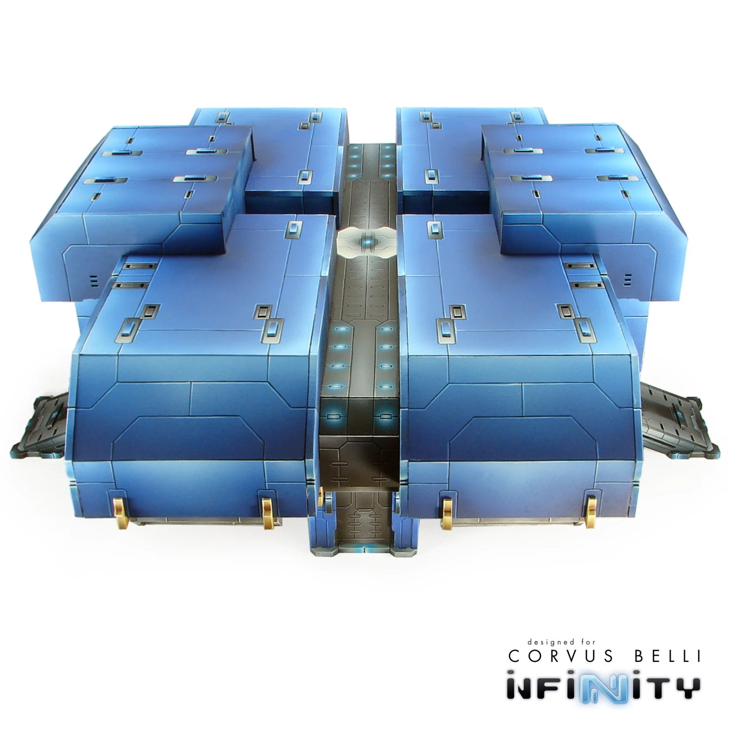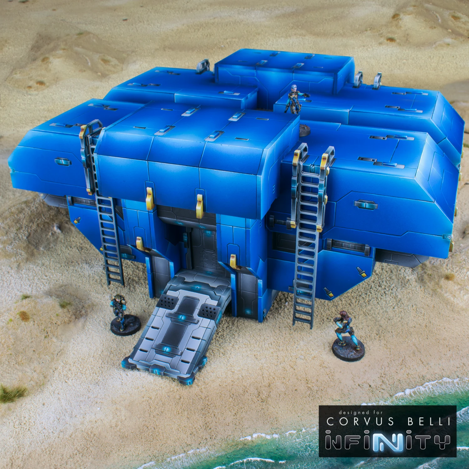 The Kapsulo Mainframe is a massive centerpiece for our range of 0-12 -themed terrain for Infinity the Game. This Building functions as an objective room for scenarios and ITS missions requiring one. Featuring four entry points at varying heights, elevating the playing surface without requiring additional movement to reach objectives.