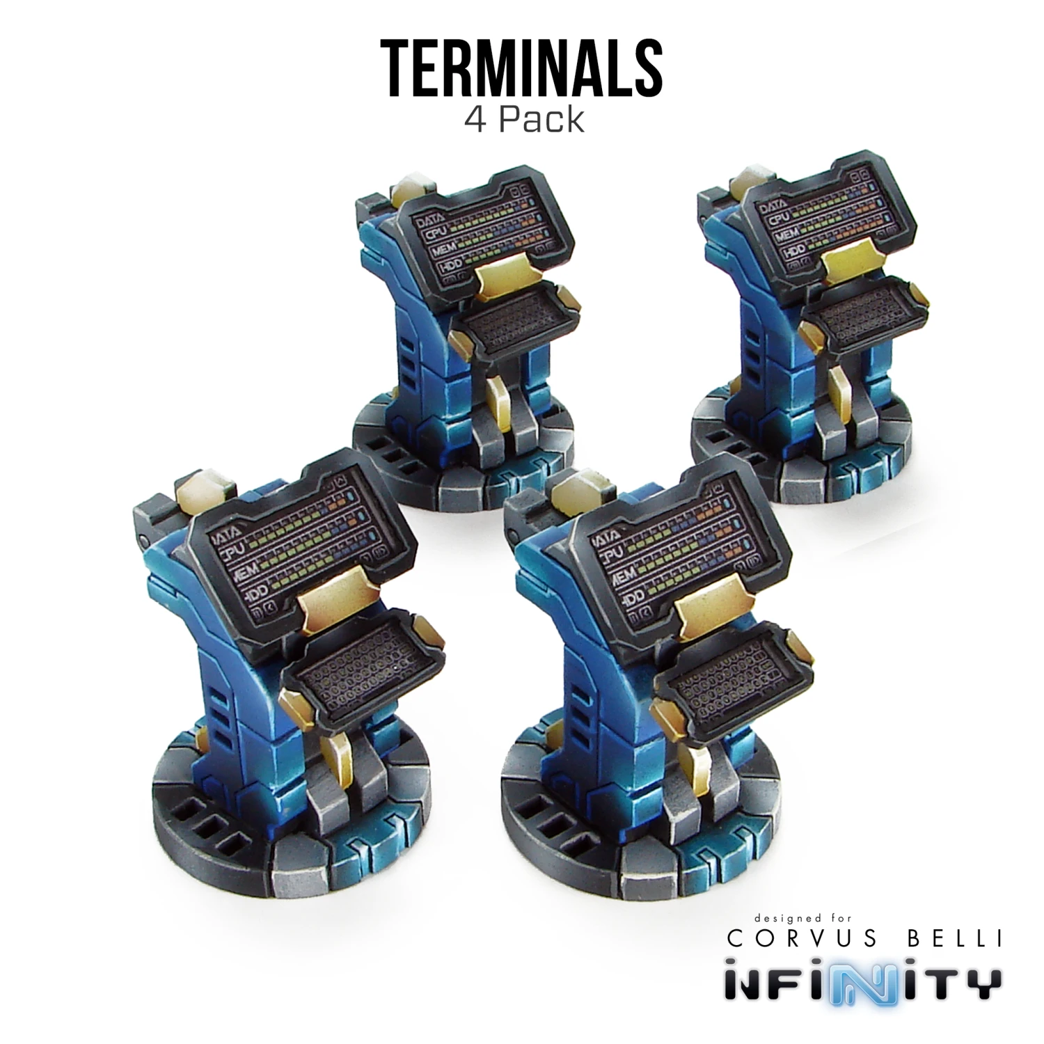 This kit contains four Terminals, perfect for any 28mm – 35mm sci-fi or near-future tabletop game. Great as tabletop scatter, or to use as objectives.