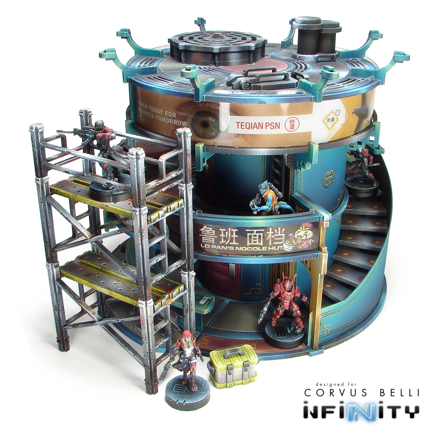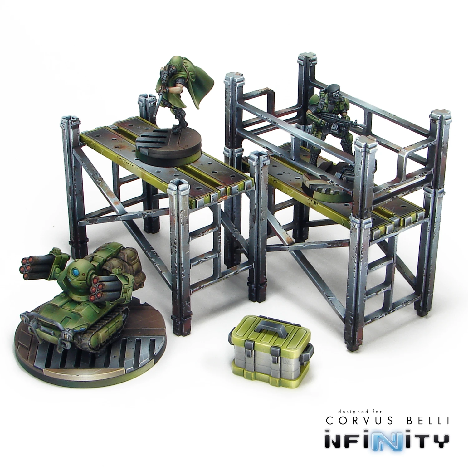 Minature Scaffolding perfect for any 28mm – 35mm sci-fi, modern, or near-future tabletop game. Great as table-top scatter, or to add to the side larger buildings as a means of increased verticality and access to high rooftops or additional story’s